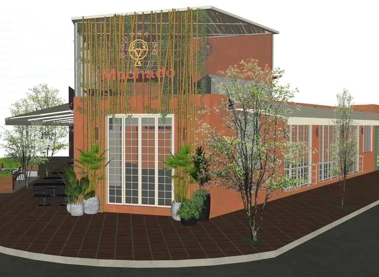 Projetos comerciais para áreas comuns de condomínios, escritórios corporativos, além de fachadas e interiores de espaços comerciais.
