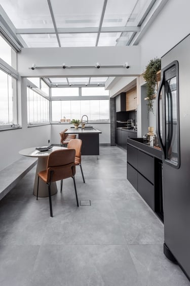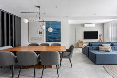 Desenvolvemos este projeto para uma família que tem a casa como ponto de encontro. O Ap Portugal, uma cobertura de 160m², foi pensado para valorizar a integração dos espaços, com soluções que unem charme, funcionalidade e identidade.