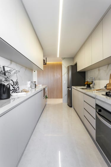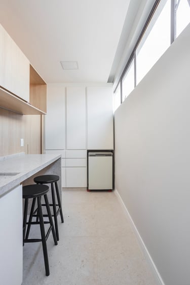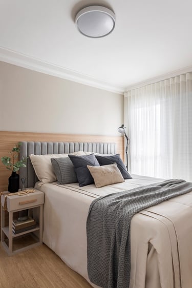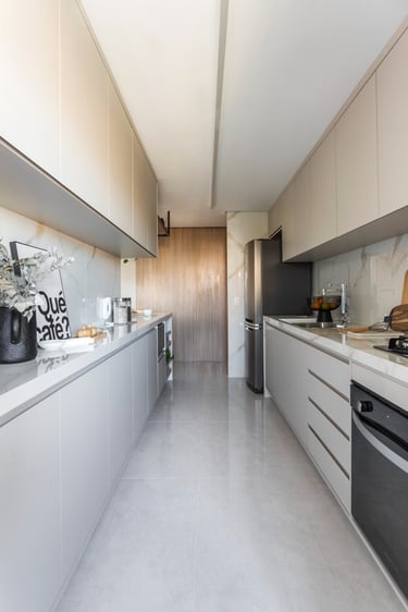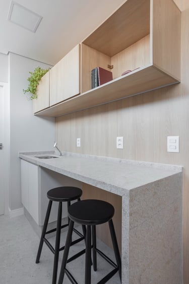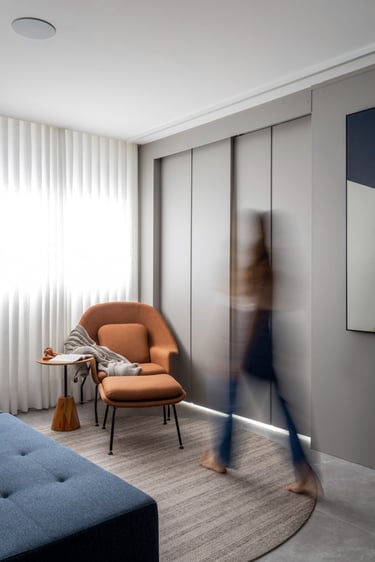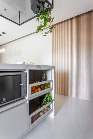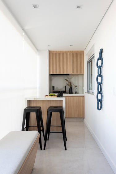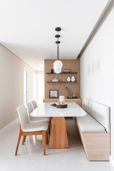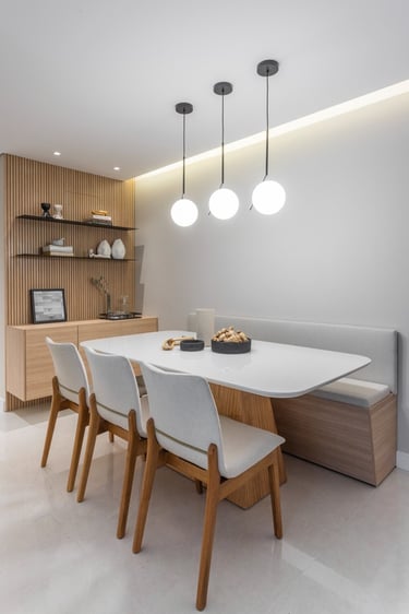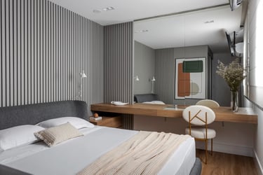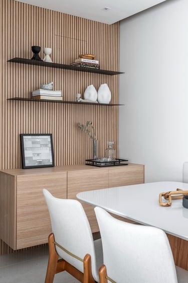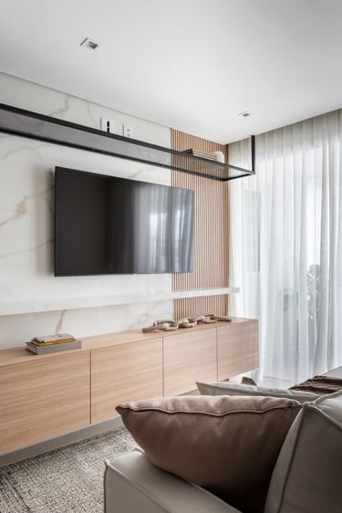 Este projeto de 86m² nasceu do desejo de criar um lar acolhedor para uma família muito especial. A proposta partiu de uma paleta de tons neutros e teve como elemento principal o ripado em madeira, presente em diversos ambientes, criando unidade, leveza e uma maior sensação de amplitude. Um resultado equilibrado, atemporal e cheio de personalidade.